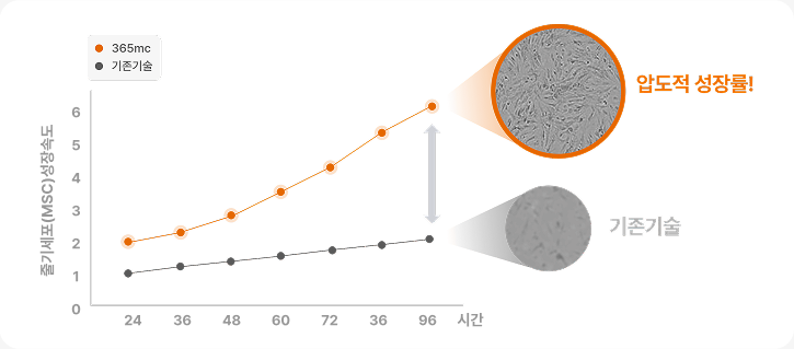 365mc의 지방줄기세포는 성장 속도가 빨라 재생효과가 뛰어납니다. 이로 인해
