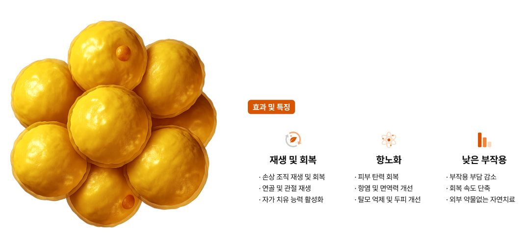 배양 없이 살아있는 순수 줄기세포만을 사용하는 점도, 안전성과 효과를 높이는 핵심 포인트입니다.