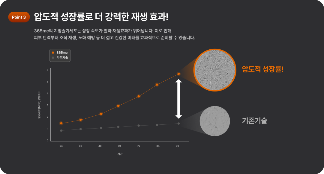 365mc는 살아있는 순수 줄기세포만을 추출·보존·시술하여, 세포 본연의 효과를 최대로 끌어올립니다.